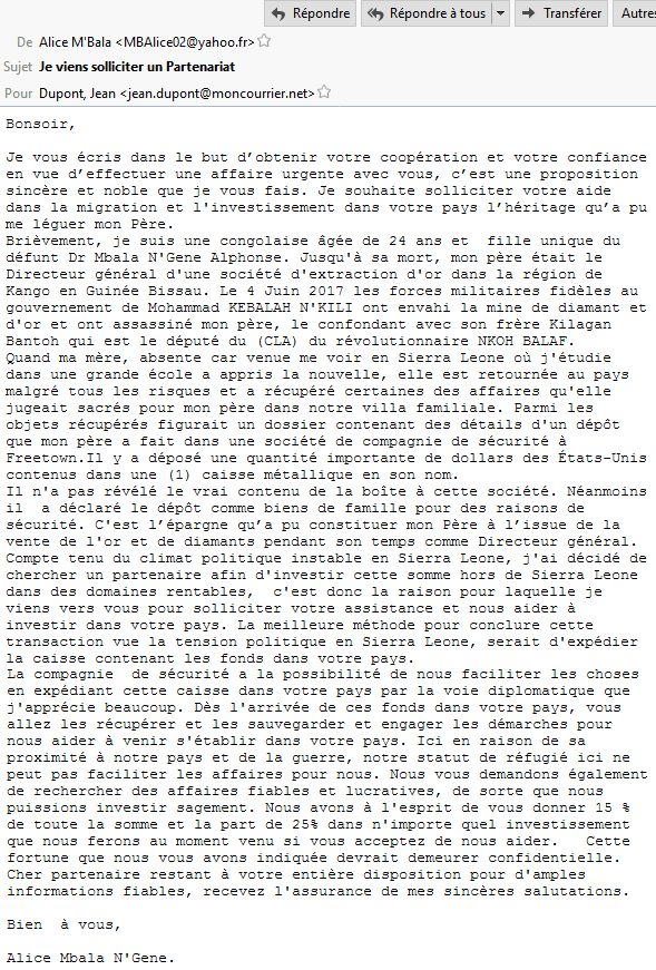 Ce message, bien qu'inoffensif, peut se révéler redoutable si l'on y répond favorablement