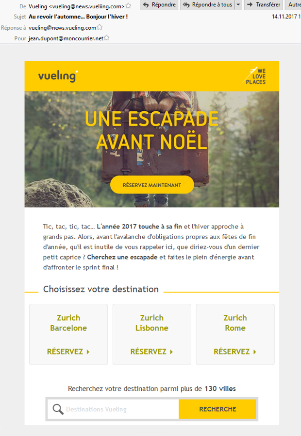 Le domaine de l'expéditeur ne correspond pas au libellé (vueling.com vs vueliing.com)